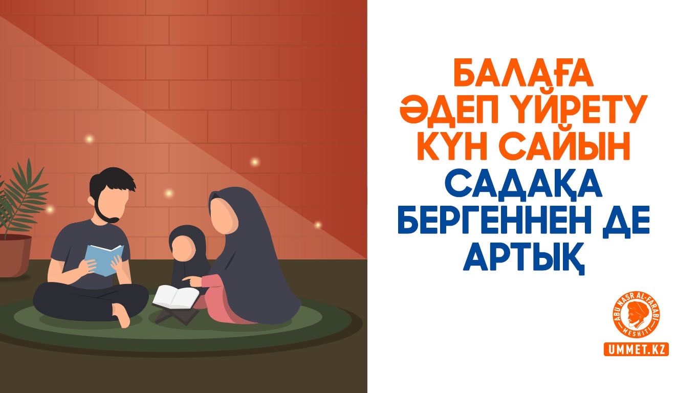 Табаранидің Мұғжамында Жәбір ибн Сумрадан жеткен хадисте Алланың елшісі (с.а.с.): «Біреулеріңнің баласына әдеп үйретуі оған әрбір күні жарты сағ (бір уыс бидай не құрма) садақа бергенінен артық», – деген.