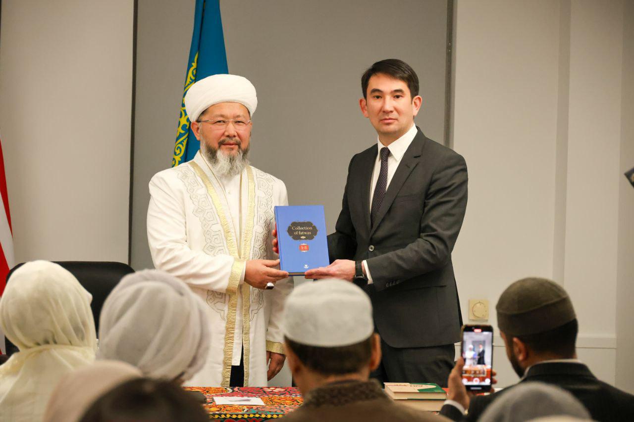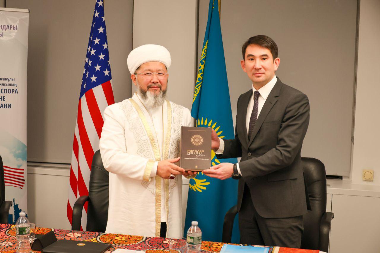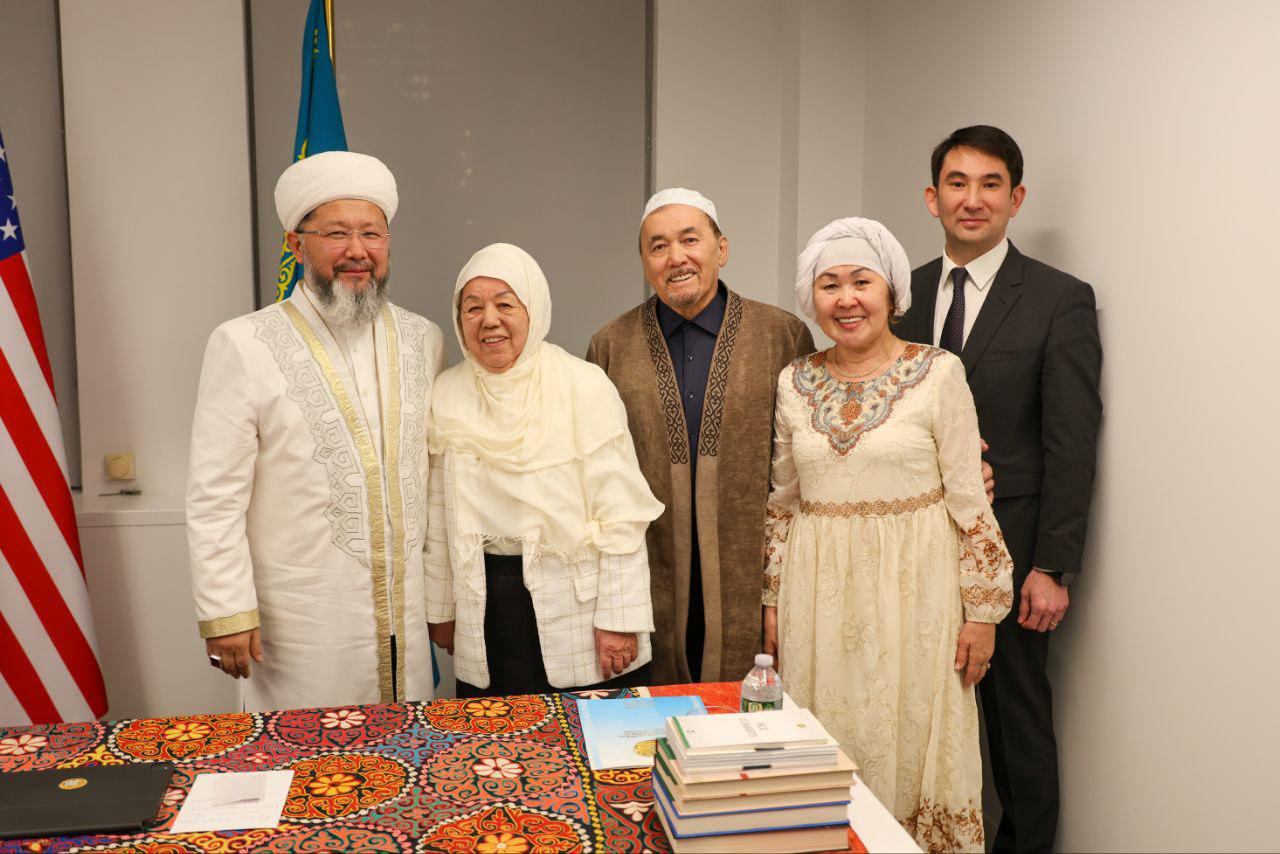 Кездесу соңында Нью-Йорк қаласындағы отандастарымыз үшін «Muftyat» баспасынан жарық көрген кітаптар Нью-Йорк қаласындағы Қазақстан Республикасының Бас консулдығының кітапханасына табысталды.