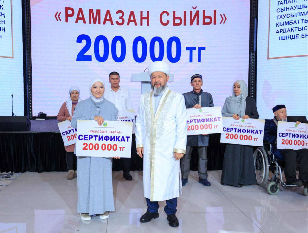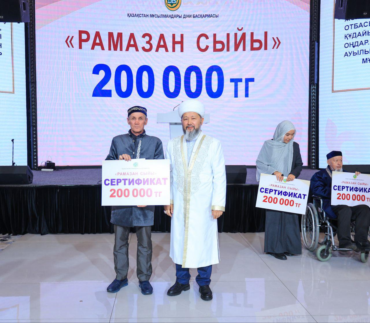 Сондай-ақ «Рамазан сыйы» акциясы аясында әрқайсысына 200 000 теңгеден төмендегі азаматтарға «Рамазан сыйы» табыс етілді: